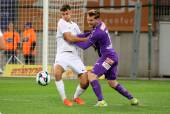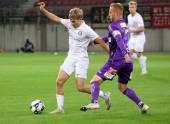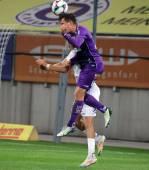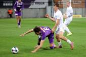 Fussball 2. Liga. SK Austria Klagenfurt gegen SK Sturm Graz II. Marco Gantschnig (Klagenfurt), Barne Pernot (Graz). Klagenfurt, 24.10..2025.