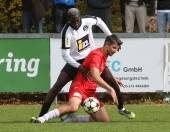 Fussball. Kaerntner Liga. KAC1909 gegen Spittal. Noah Pogatetz (KAC), Denin Matoruga (Spittal). Klagenfurt, am 2.11.2025.