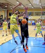 Basketball 2. Liga 2025⁄2026. Grunddurchgang 15. Runde. Woerthersee Piraten gegen Vienna United. Marcus Holyfield Piraten Alejandro Barbera Zapero Vienna. Klagenfurt am 24.1.2026Foto: Kuess