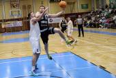 Basketball 2. Liga 2025/2026. Grunddurchgang 21. Runde. KOS gegen Woerthersee Piraten. Jure Bavdek (KOS), Tim Huber (Piraten). Klagenfurt, am 8.3.2026