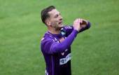 Fussball 2. Liga. SK Austria Klagenfurt gegen St. Poelten. Torjubel Marc Andre Schmerboeck Klagenfurt.. Klagenfurt 5.10..2025.Foto: Kuesswww.qspictures.net
