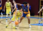 Basketball 2. Liga 2025/2026. Grunddurchgang 8. Runde. Woerthersee Piraten gegen BBU Salzburg. Shawn L. Ray (Piraten), Marvin Hylton (Salzburg). Klagenfurt, am 13.12.2025.