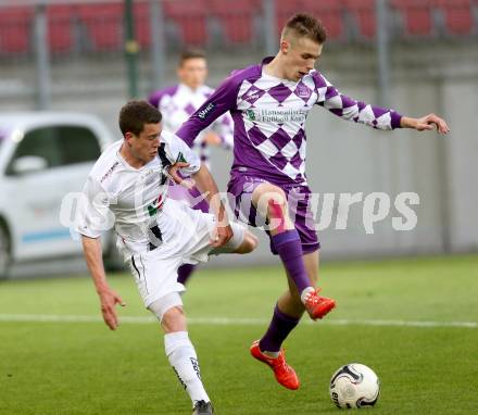 Fussball Regionalliga. SK Austria Klagenfurt gegen RZ Pellets WAC Amateure. Patrik Eler Klagenfurt Markus Poecheim WAC. Klagenfurt am 30.5.2015.Foto: Kuess