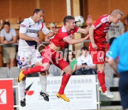 Fussball Regionalliga. SAK gegen Vorwaerts Steyr. Zeljko Mitrakovic, (SAK), Bruno Pralas, David Peham (Vorwaerts Steyr). Klagenfurt, 12.5.2015.