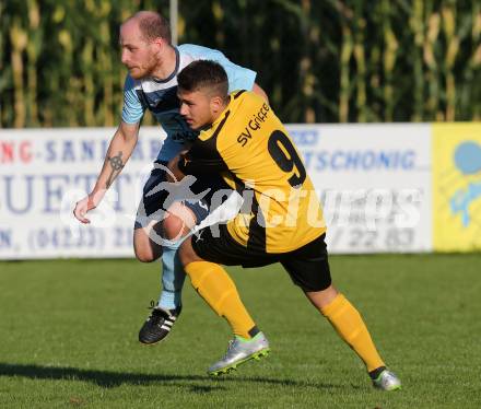 Fussball 1. Klasse D. Griffen gegen St. Margareten/Ros. Pascal Werner Bierbaumer, (Griffen), Hannes Doujak (St. Margareten). Griffen, am 12.9.2015.