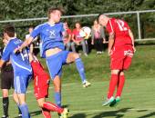 Fussball. Unterliga Ost. Ludmannsdorf gegen Ruden. Oswin Rupp(Ludmannsdorf), Josef Kraker (Ruden). Ludmannsdorf, 20.9.2015.