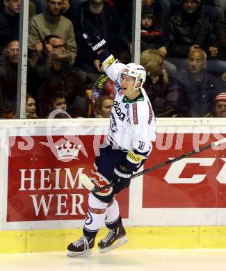 EBEL. Eishockey Bundesliga. KAC gegen VSV. Torjubel Valentin Leiler (VSV). Klagenfurt, am 22.11.2015.