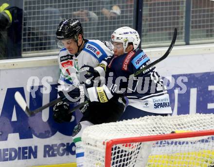 EBEL. Eishockey Bundesliga. EC VSV gegen HDD TELEMACH Olimpija Ljubljana. Brock McBride, (VSV), Kristof Reinthaler (Laibach). Villach, am 4.12.2015.