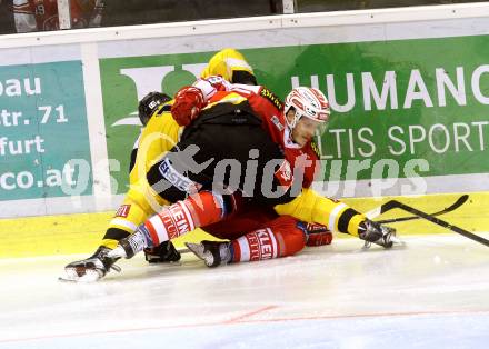 EBEL. Eishockey Bundesliga. KAC gegen UPC Vienna Capitals. Stefan Geier, (KAC), Patrick Peter (Caps). Klagenfurt, am 13.12.2015.