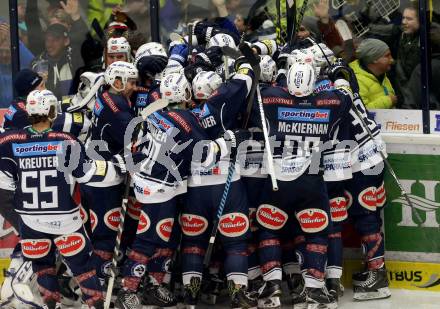 EBEL. Eishockey Bundesliga. EC VSV gegen UPC Vienna Capitals. Jubel (VSV). Villach, am 4.3.2016.