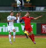 Fussball Kaerntner Liga. Voelkermarkt gegen ATUS Ferlach. Torjubel Ernst Golautschnig (Ferlach). Voelkermarkt, am 1.4.2016.