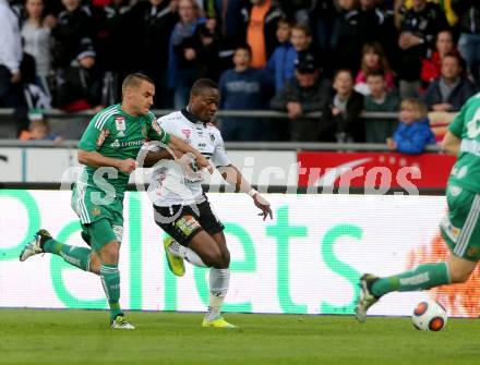 Fussball tipico Bundesliga. RZ Pellets WAC gegen SK Rapid Wien. Issiaka Ouedraogo, (WAC), Steffen Hofmann (Wien). Lavanttal Arena Wolfsberg, am 9.4.2016.