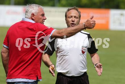 Fussball Kaerntner Liga. ATUS Ferlach gegen Globasnitz. Josef Micheu, (Globasnitz), Schiedsrichter Arno Weichsler . Ferlach, am 7.5.2016.