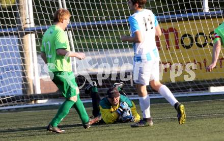 Fussball 2. KLasse D. Moosburg gegen Launsdorf. Ewald Georg Kilzer, Alexander Wilhelm Lorscheid, (Moosburg), Markus Florian Sebestyen (Launsdorf). Moosburg, am 22.10.2016.