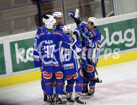 EBEL. Eishockey Bundesliga. VSV gegen	HDD Olimpija Ljubljana. Torjubel Jan Urbas, Miha Verlic, Jeremie Blain, Kevin Wehrs (VSV). Villach, am 20.1.2017.