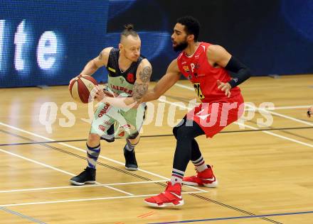 Basketball. OEBV Cup. Raiders Villach gegen WBC Wels. Nino Gross, (Villach), Kevin Payton (Wels). Villach, am 21.1.2017.