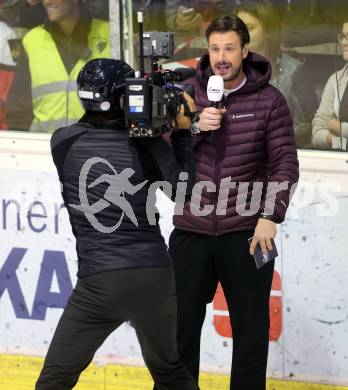 EBEL. Eishockey Bundesliga. KAC gegen EC Red Bull Salzburg. Marc Brabant (Servus TV). Klagenfurt, am 17.3.2017.