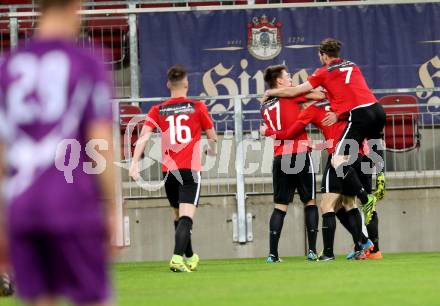 Fussball Regionalliga. SK Austria Klagenfurt gegen St. Florian. Torjubel St. Florian. Klagenfurt, am 31.3.2017.