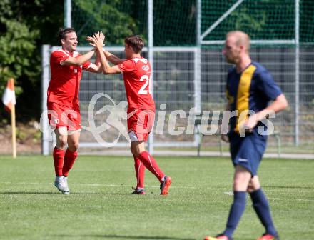 Fussball. 2. Klasse D. KAC B Juniors gegen Viktring. Torjubel Edin Cosic, Johannes Georg Sibitz (KAC). Klagenfurt, 29.7.2017.