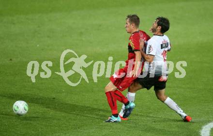 Fussball Tipico Bundesliga. RZ Pellets WAC gegen Cashpoint SCR Altach. Nemanja Rnic, (WAC), Stefan Nutz (Altach). Wolfsberg, am 6.8.2017.