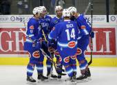 EBEL. Eishockey Bundesliga. Testspiel. VSV gegen SC Riessersee. Torjubel Ryan Glenn Valentin Leiler Stefan Bacher Andrew Sarauer Kyle Beach VSV. Villach am 25.8.2017.Foto: Kuess