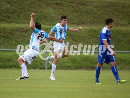 Fussball. 1. Klasse A. Hermagor gegen Kirchbach, Torjubel Hannes Zobernig, Tobias Hohenwarter, (Kirchbach), Hermagor, 9.9.2017.