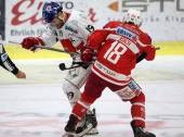 EBEL. Eishockey Bundesliga. KAC gegen HC TWK Innsbruck. Thomas Koch, (KAC), Kevin Wehrs, Patrik Nechvatal (Innsbruck). Klagenfurt, am 1.10.2017.