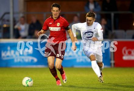 Fussball Kaerntner Liga. SAK gegen ATSV Wolfsberg. Amer Krcic, (SAK), Patrick Pfennich (Wolfsberg). Klagenfurt, am 20.10.2017.