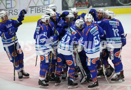 EBEL. Eishockey Bundesliga. EC VSV gegen Vienna Capitals. Jubel (VSV). Villach, am 22.10.2017.