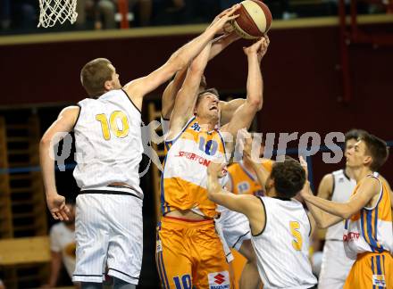 Basketball 2. Bundesliga. Grunddurchgang. 6. Runde. Woerthersee Piraten gegen BBU Salzburg. Ian Moschik, (Woerthersee Piraten), Guillermo Sanchez Daza (Salzburg). Klagenfurt, am 21.10.2017.
