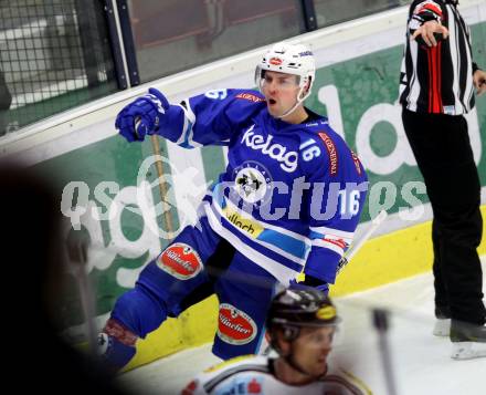 EBEL. Eishockey Bundesliga. EC VSV gegen Dornbirn Bulldogs. Torjubel Jordan Hickmott (VSV). Villach, am 20.12.2017.