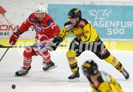 EBEL. Eishockey Bundesliga. KAC gegen Vienna Capitals. Pattrick Harand, (KAC), Taylor Vause (Vienna Capitals). Klagenfurt, am 22.12.2017.