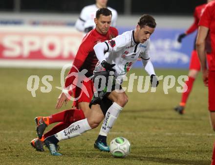 Fussball tipico Bundesliga. RZ Pellets WAC gegen FC Flyeralarm Admira. Sasa Jovanovic, (WAC), Stephan Zwierschitz (Admira). Wolfsberg, am 17.2.2018.