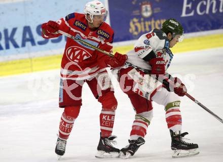 EBEL. Eishockey Bundesliga. KAC gegen HCB Suedtirol Alperia. Patrick Harand, (KAC), Christopher Carlisle (Bozen). Klagenfurt, am 2.3.2018.