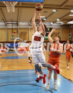 Basketball 2. Bundesliga. Playdown. 4. Runde. Woerthersee Piraten gegen Basket2000 Vienna Warriors. Lukas Simoner, (Piraten), Ognjen Drljaca (Basket2000 Vienna Warriors). Klagenfurt, am 14.4.2018.