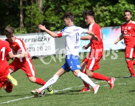 Fussball. Kaerntner Liga. KAC 1909 gegen Treibach. Patrick Legner (KAC), Lukas Rabitsch (Treibach). Klagenfurt, 28.4.2018.