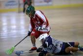 Lacrosse. KAC gegen Vienna Monarchs Lacrosse. Bernhard Jordan (KAC), Daniel Pucher (Vienna). Klagenfurt, am 12.8.2018.