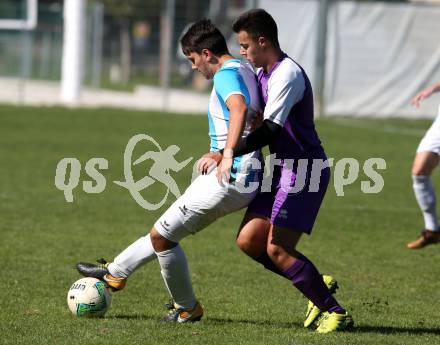 Fussball 1. KLasse C. SK Austria Klagenfurt Amateure gegen Launsdorf. Emrah Osmanovic (Klagenfurt), Marcel Lainer (Launsdorf). Klagenfurt, am 30.9.2018.