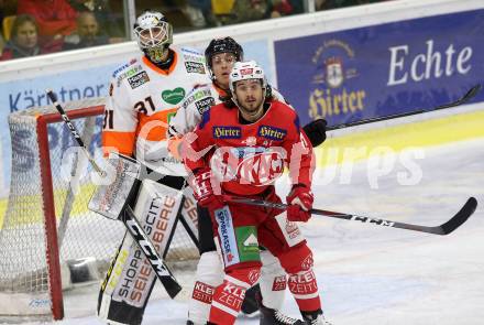 EBEL. Eishockey Bundesliga. KAC gegen Moser Medical Graz99ers. Witting Marcel (KAC), Kirchschlaeger Erik, Linus Lundin (Graz). Klagenfurt, am 19.10.2018.