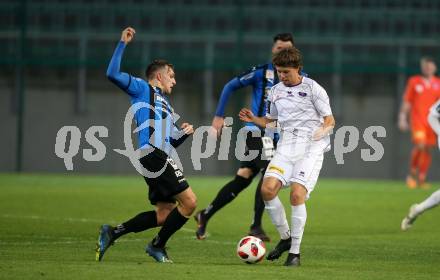 Fussball 2. Liga. SK Austria Klagenfurt gegen SKU Amstetten. Sandro Zakany Austria Klagenfurt Thomas Hinum Amstetten. Klagenfurt am 19.10.2018.Foto: Kuess