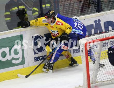 EBEL. Eishockey Bundesliga. EC VSV gegen Vienna Capitals. Bacher Stefan (VSV), Vause Taylor (Vienna Capitals). Villach, am 2.12.2018.