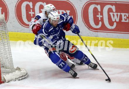 EBEL. Eishockey Bundesliga. EC VSV gegen KAC. Jason Desantis, (VSV), Thomas Koch (KAC). Villach, am 1.1.2019.