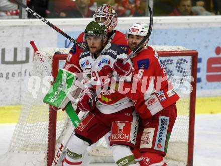 EBEL. Eishockey Bundesliga. KAC gegen HCB Suedtirol Alperia. Charles Robin Gartner, (KAC), Daniel Frank (Bozen). Klagenfurt, am 1.3.2019.