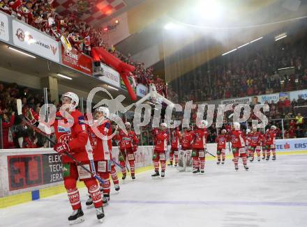 EBEL. Eishockey Bundesliga. KAC gegen Moser Medical Graz99ers. Jubel (KAC). Klagenfurt, am 31.3.2019.