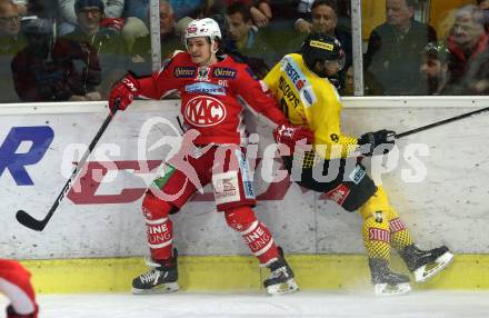 EBEL. Eishockey Bundesliga. KAC gegen spusu Vienna Capitals. Nikolaus Kraus, (KAC), Ali Wukovits (Vienna Capitals). Klagenfurt, am 16.4.2019.