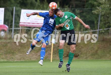 Fussball Unterliga West. Seeboden gegen Matrei. Antun Miskovic, (Seeboden), Daniel Resinger  (Matrei). Seeboden, am 3.8.2019.