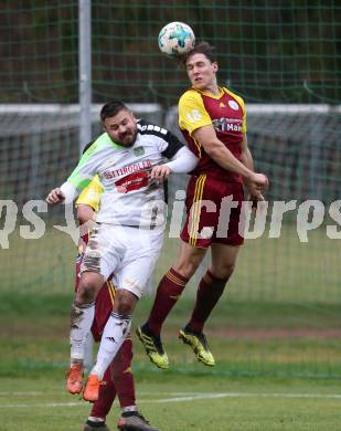 Fussball Unterliga West. Radenthein gegen Lienz. Mario Patrick Tarmann, (Radenthein), Sven Lovric (Lienz). Radenthein, am 2.11.2019.