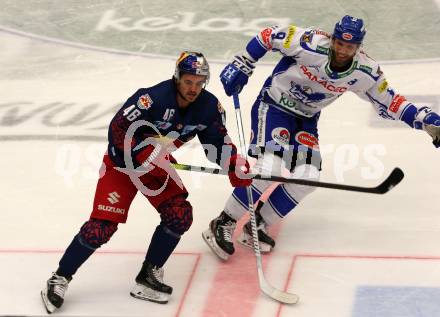 EBEL. Eishockey Bundesliga. EC VSV gegen EC Red Bull Salzburg. Kevin Schmidt, (VSV), Samuel Witting (Salzburg). Villach, am 13.12.2019.