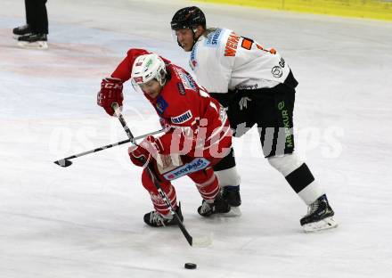 EBEL. Eishockey Bundesliga. KAC gegen Moser Medical Graz99ers. Manuel Ganahl, (KAC), Peter Robin Weihager (Graz). Klagenfurt, am 28.12.2019.