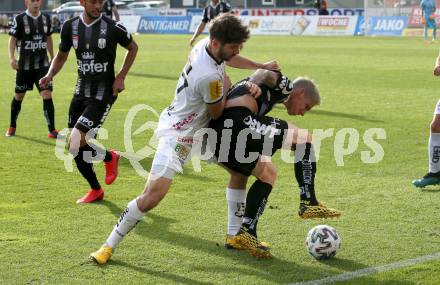 Fussball Bundesliga. RZ Pellets WAC gegen LASK.  Michael Novak,  (WAC),   Dominik Frieser (LASK). Wolfsberg, am 7.6.2020.